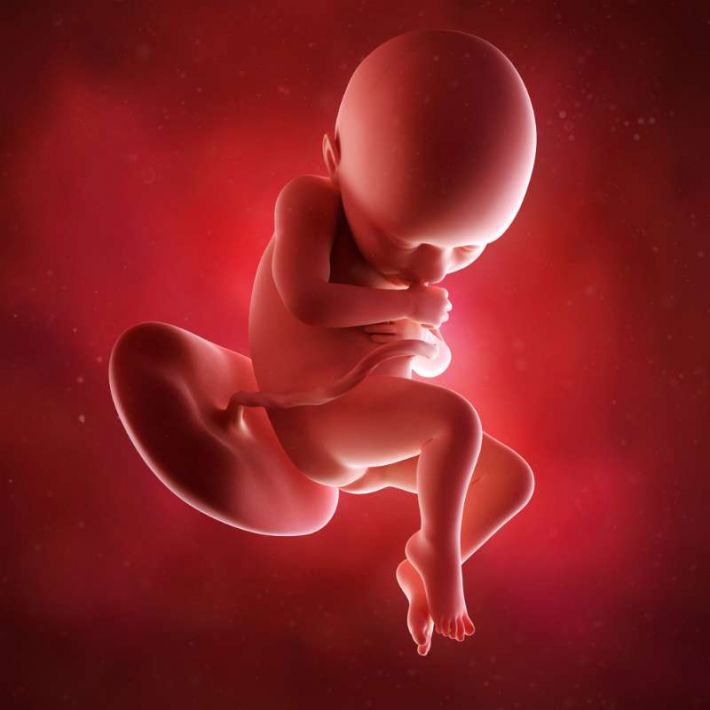 De baby, die al bijna klaar is om ter wereld te komen, zal nu wel ingedaald zijn in je bekken. Het lijkt dan of je buik heel laag 'hangt'. Na het indalen kan de baby niet meer van positie veranderen. Het wordt steeds krapper, en de bewegingen zullen minder worden.