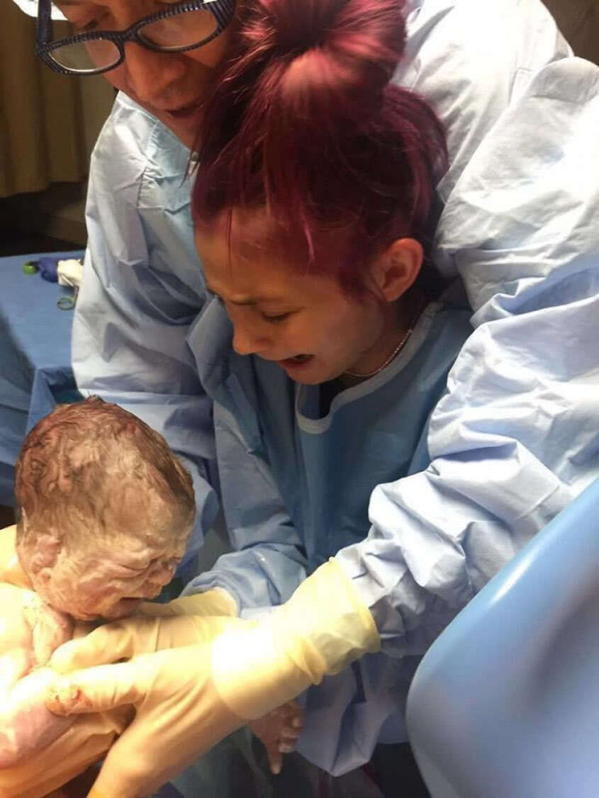 Dus zo het geschiedde: Jacee was anderhalf jaar geleden aanwezig bij de geboorte van haar broertje en op het moment suprême mocht ze de arts helpen met de baby daadwerkelijk op de wereld zetten. Moeder Dede vertelt: "De weeën en het persen was ontzettend pijnlijk, maar de expressie op het gezicht van Jacee hielpen me er ontzettend goed doorheen!" De foto's die er van dat moment gemaakt zijn, doet vele harten over de hele wereld smelten. Kijken jullie mee?