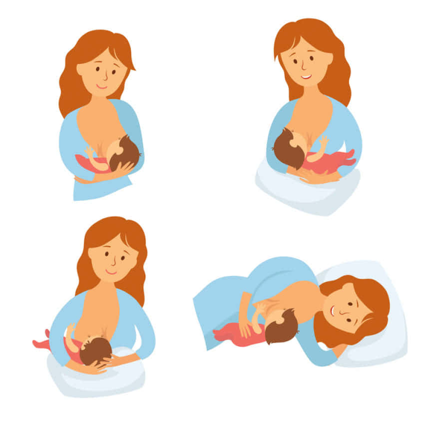Borstvoeding kun je in verschillende houdingen geven. En wat de een heel prettig vindt, kan een ander juist weer heel vervelend vinden. Zoek daarom rustig naar een houding die jij en je kindje prettig vinden. Wij zetten vier houdingen voor je op een rij.
