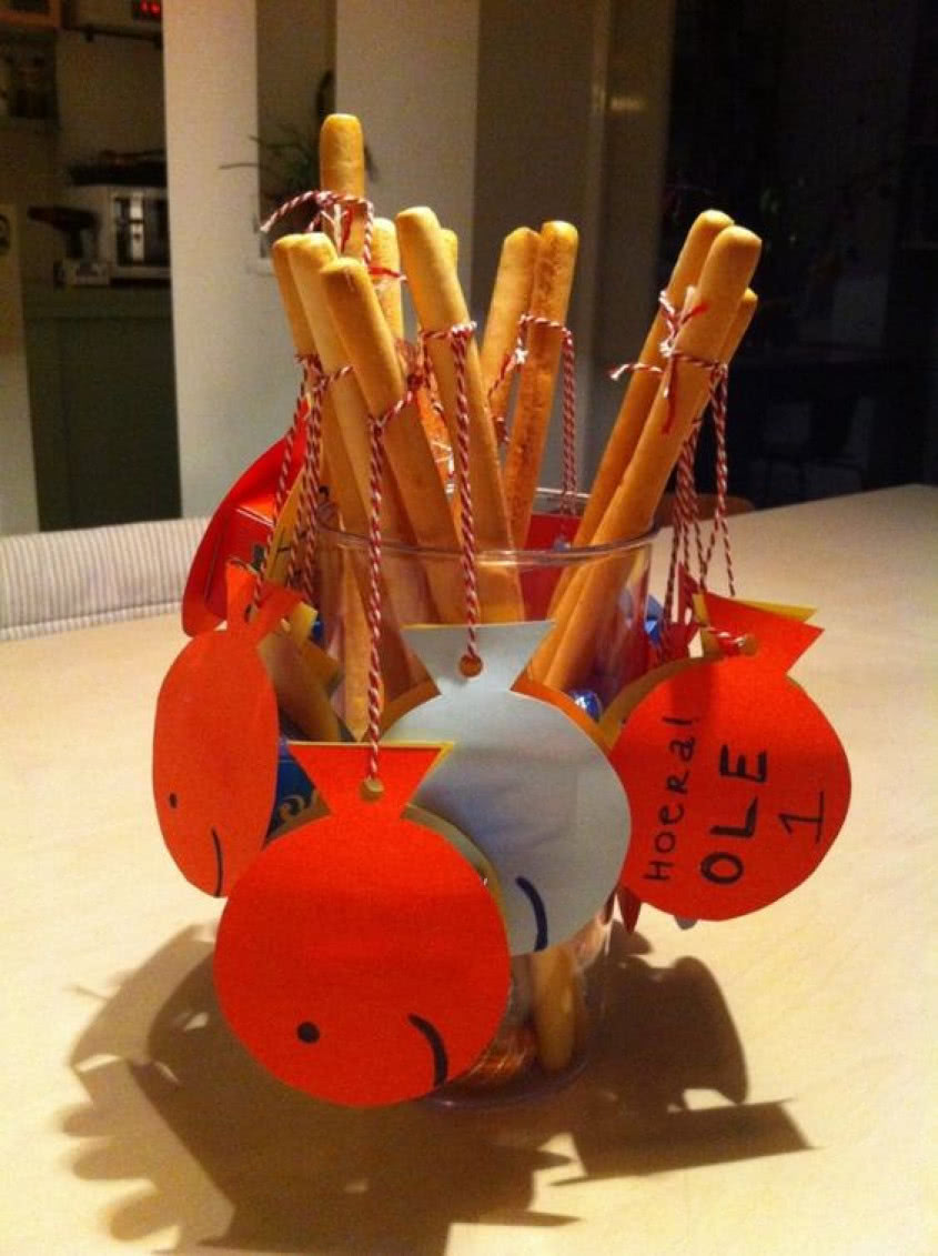 Leef je uit met satéprikkers waar je stukjes banaan en aardbei op prikt. Maar daarnaast kun je ook los gaan met koekjesvormen om bijvoorbeeld een ster in een plak kaas te drukken en die op de spies te prikken. Of wat dacht je van een vormpje uit een plak meloen? Of de leeftijd van je kind uit een pakje ontbijtkoek? Je kunt zelf allerlei creaties bedenken en het ziet er hoe dan ook feestelijk uit!
