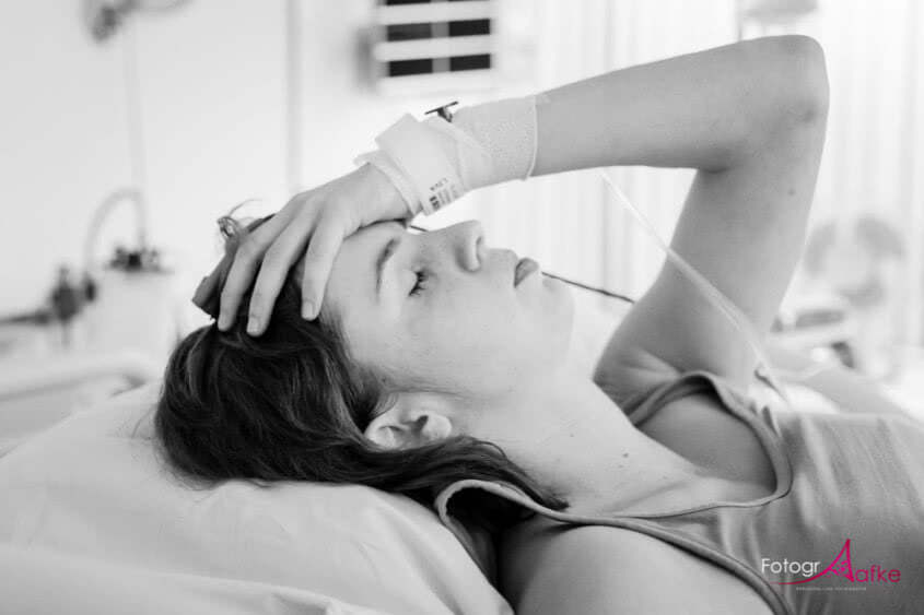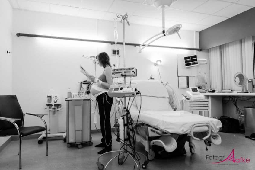 Om 18.47 uur wordt er een infuus geprikt om zo meteen met inleiden te kunnen beginnen. Om 19.00 uur gaan de weeënopwekkers aan en gaat de bevalling dan eindelijk beginnen. Een half uurtje later wordt de dosis verhoogd en aangezien het ziekenhuis eten deze dag niet heel aantrekkelijk klinkt gaat Danny beneden even salades en een broodje voor ons halen. Al wandelend eet Marjolein haar salade op en ondertussen worden de weeënopwekkers regelmatig verhoogd. Ze blijft lekker in beweging om zo de bevalling en de weeën te simuleren. Rond kwart voor negen voelt Marjolein de harde buiken echt goed. Om 22.00 uur noemt ze de harde buiken ook eindelijk weeën, ze worden nu ook echt pijnlijker heel langzaam aan gaat ze minder praten en keert ze in zichzelf om de weeën goed op te vangen.