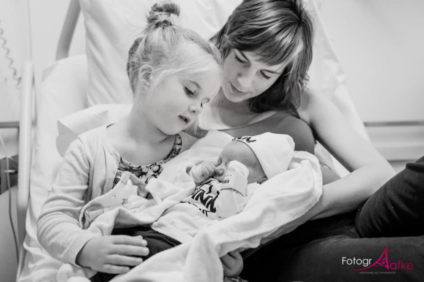 De volgende ochtend komt Tess samen met oma, pake en beppe en een mega heliumballon naar de kraamafdeling om haar kleine broertje te ontmoeten. Tess is enorm nieuwsgierig en vanaf het eerste moment vind ze Finn interessant en heel lief. Hij krijgt een kusje en wordt zachtjes geaaid, grote zus neemt nog even de tijd om haar kleine broertje liefdevol te bekijken terwijl hij bij haar op schoot ligt. Echte liefde <3