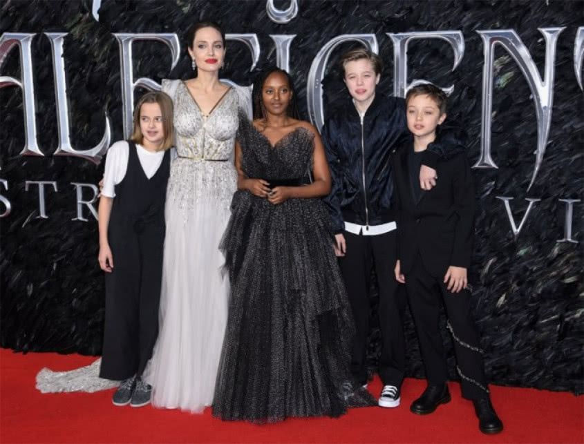 Zij had de kinderen Vivienne en Knox (tweeling, 11), Shiloh (13) en de geadopteerde Zahara (14) bij zich. De oudste twee jongens bleven dus thuis. Angelina bracht eerder vaker haar kinderen mee naar premières. Zahara heeft namelijk alle premières bijgewoond en Shiloh ging mee naar Rome en Los Angeles. De tweeling was er ook in Los Angeles en Pax was ook van de partij. En in Tokio was het zoon Maddox die erbij was.