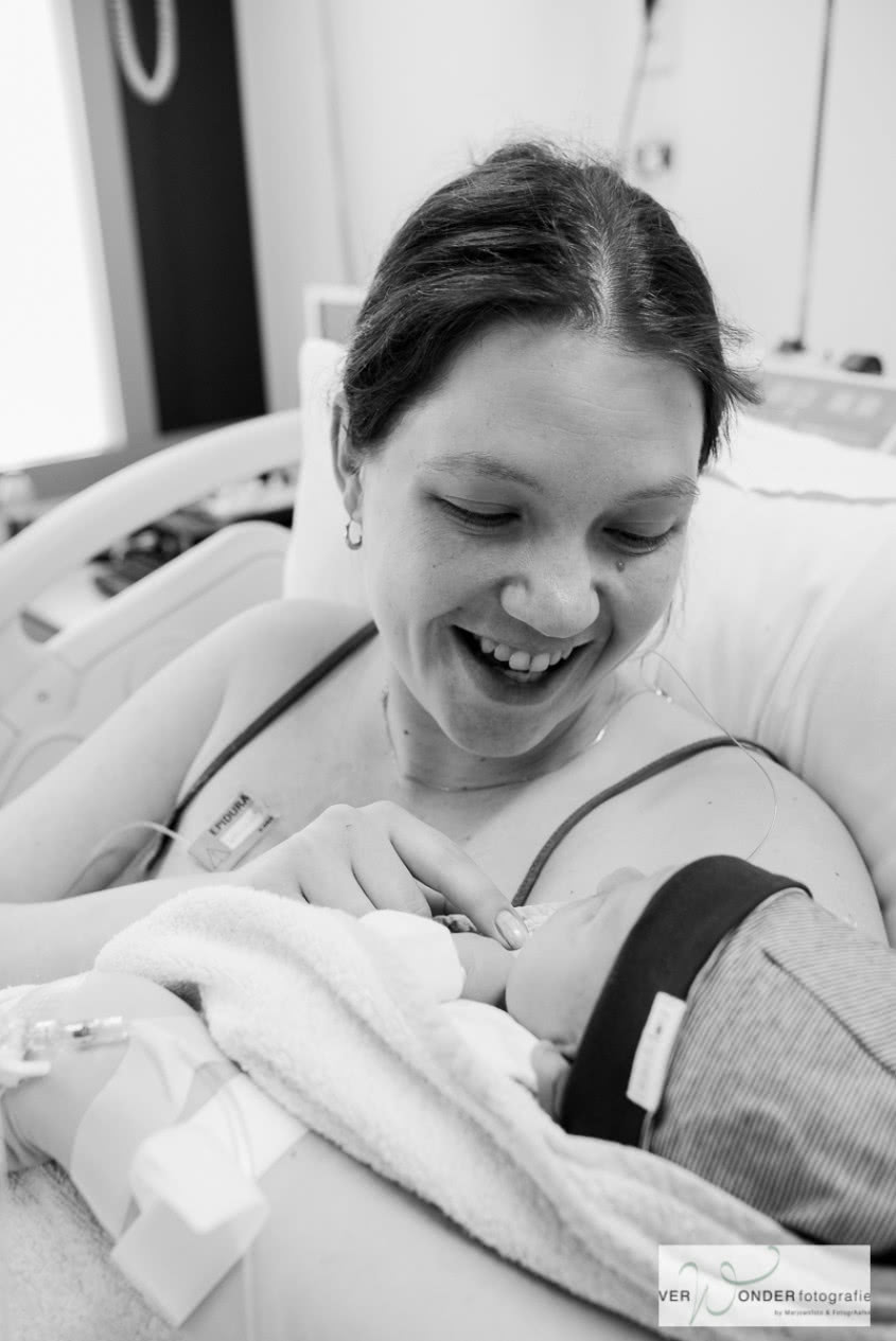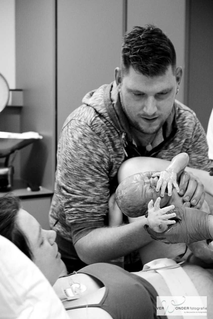 Nog maar net op tijd kom ik aan in het ziekenhuis. Slechts tien minuten na mijn binnenkomst in de verloskamer pakt Dennis zijn eerste zoon aan en legt hem bij Tamara op haar borst. Wat een magisch en wonderlijk moment. De ontlading is groot en er vloeien tranen van geluk en dankbaarheid.