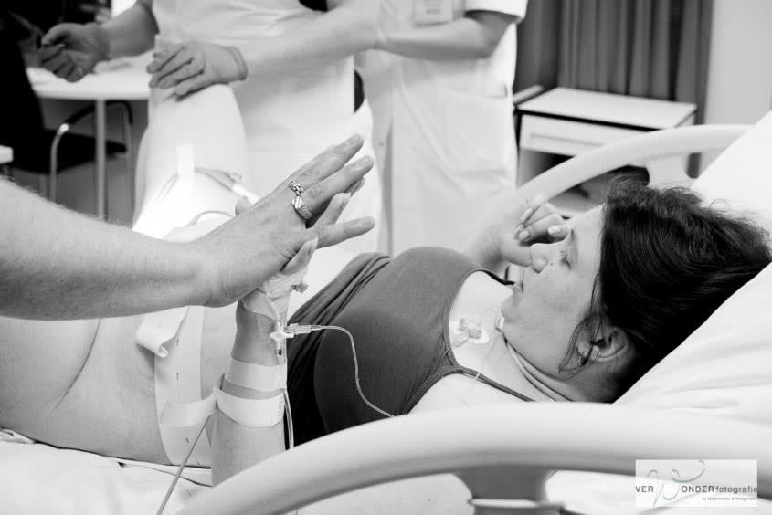 Op het moment dat de laatste aanwezigen de deur uit lopen gaat mijn telefoon. Ik sta gelijk op scherp en dat blijkt ook verstandig want het laatste stukje gaat ineens snel. Tamara heeft opeens al acht centimeter ontsluiting. Ik pak snel mijn cameratas en laat het versierde huis voor wat het is. Van babyroze gaan we naar babyblauw want Tamara en Dennis verwachten een jongetje. Na twee dochters mag dit gezin nu een jongetje in hun harten sluiten.