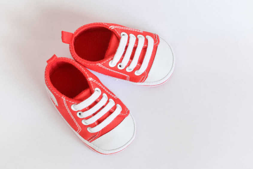 Als je niet kunt lopen, dan heb je ook nog geen schoenen nodig. Geloof me: je kunt dat geld beter uitsparen voor de jaren die nog volgen. Met al die groeispurten van mijn twee grote spruiten, koop ik me een ongeluk aan schoenen.