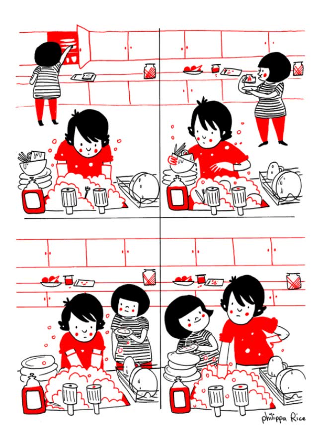 Of je nu (al) kinderen hebt of niet: je geliefde speelt een hele grote rol in je leven. Ware liefde is iets ontzettend moois en zit 'm eigenlijk gewoon in de kleine, dagelijkse dingen. Word jij ook altijd zo blij van bijvoorbeeld samen op de bank kruipen of samen tandenpoetsen? Dan zullen deze tekeningen van Philippa Rice zeker herkenbaar voor je zijn.