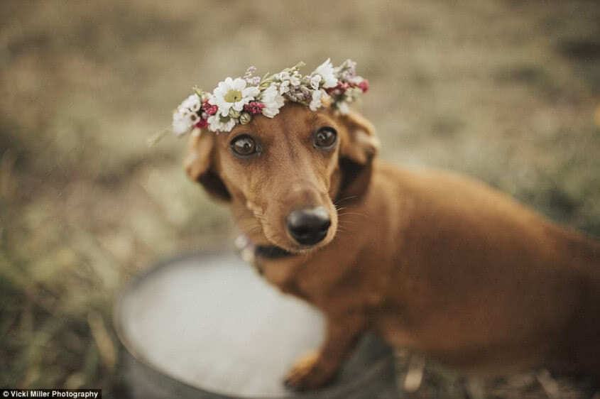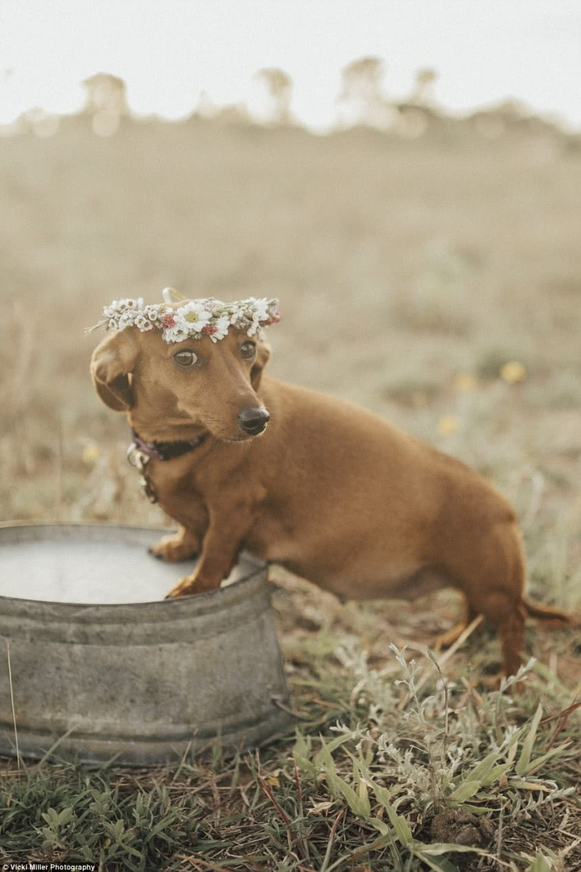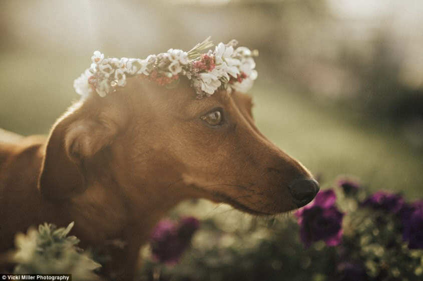 Australische fotograaf Vicki Miller besloot een prachtige fotoreportage van haar zwangere hondje Cindi te maken. Het diertje is hoogzwanger en wordt op allerlei manieren vastgelegd, precies zoals we van zwangerschapsshoots gewend zijn: een ondergaande zon voor een romantische touch, een bloemetjeskrans op haar kop en haar bolle buikje prominent aanwezig. "Toen Cindi zwanger werd, besloot ik dat ik een zwangerschapsshoot met haar wilde doen. In de eerste instantie vooral voor de grap, maar het resultaat is verbazingwekkend genoeg erg mooi geworden!" legt Vicki uit.
