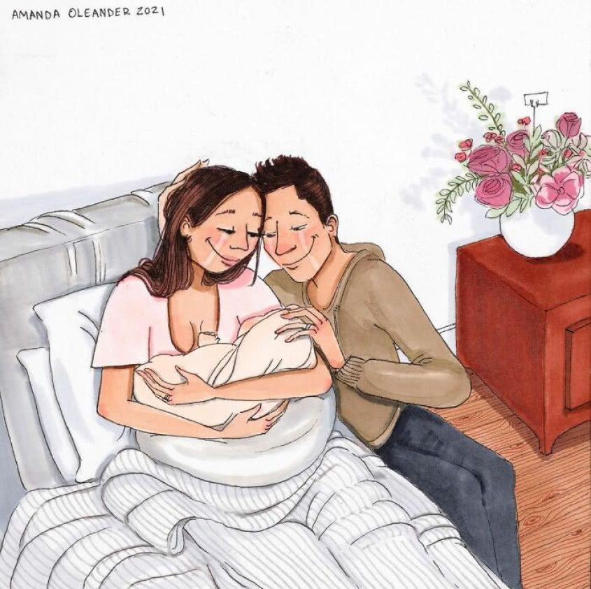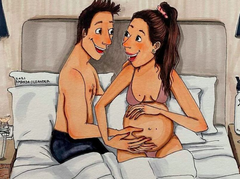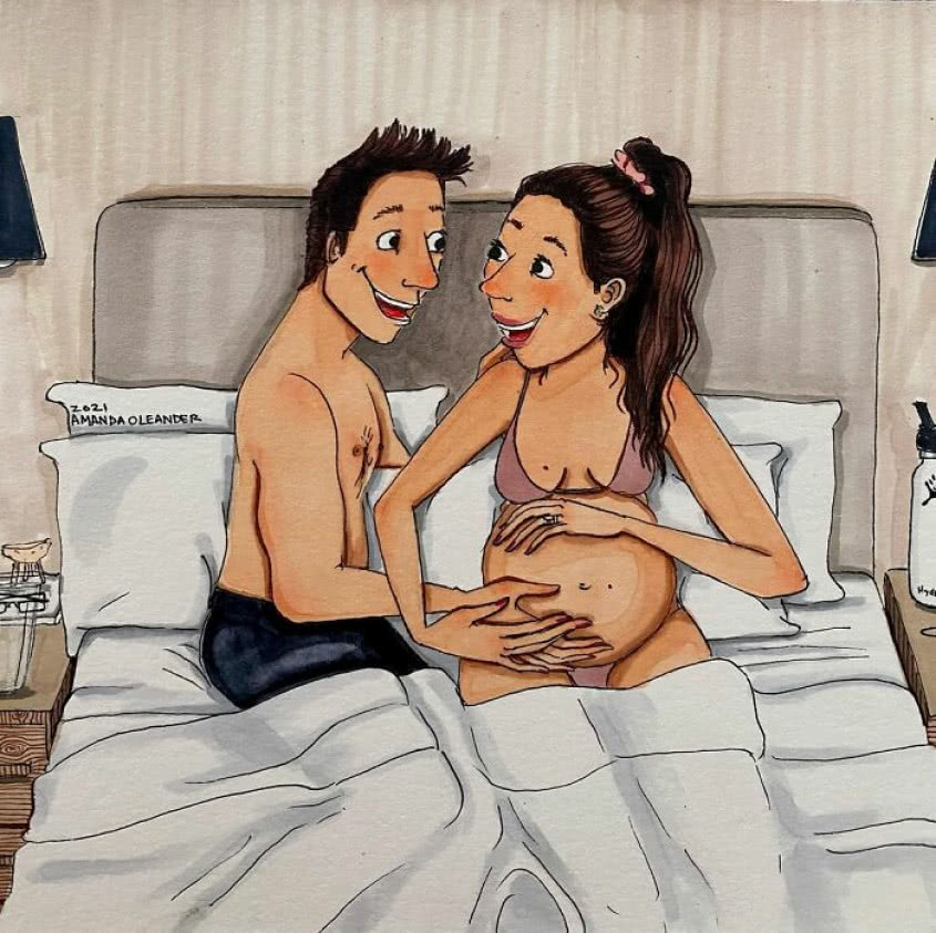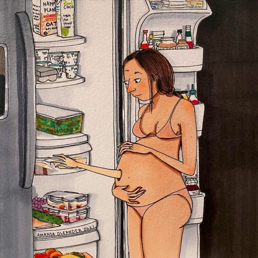 Illustratrice Amanda Oleander brengt haar eigen zwangerschap met prachtige en herkenbare illustraties in beeld. Mooi om te zien!