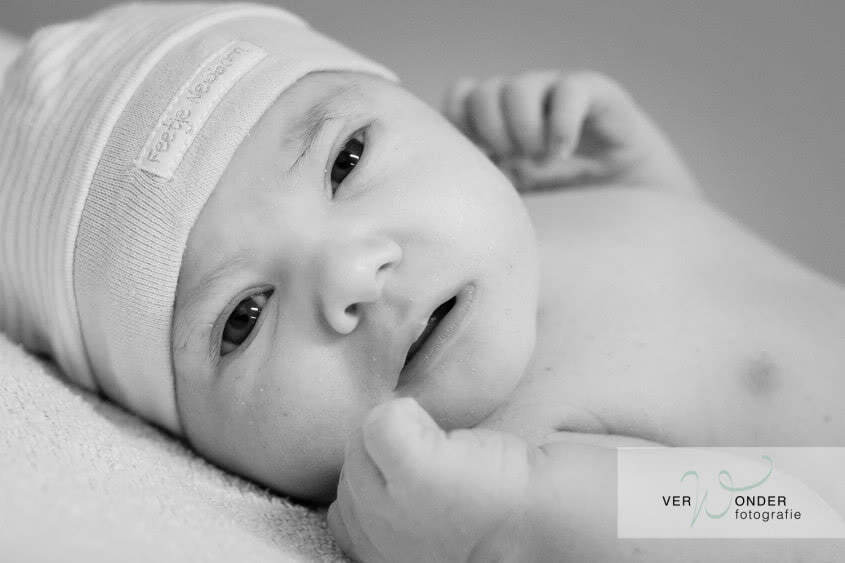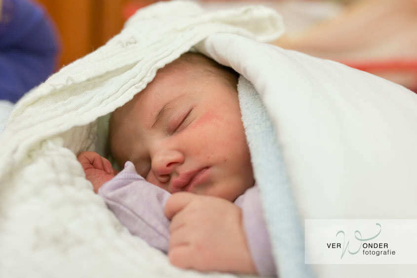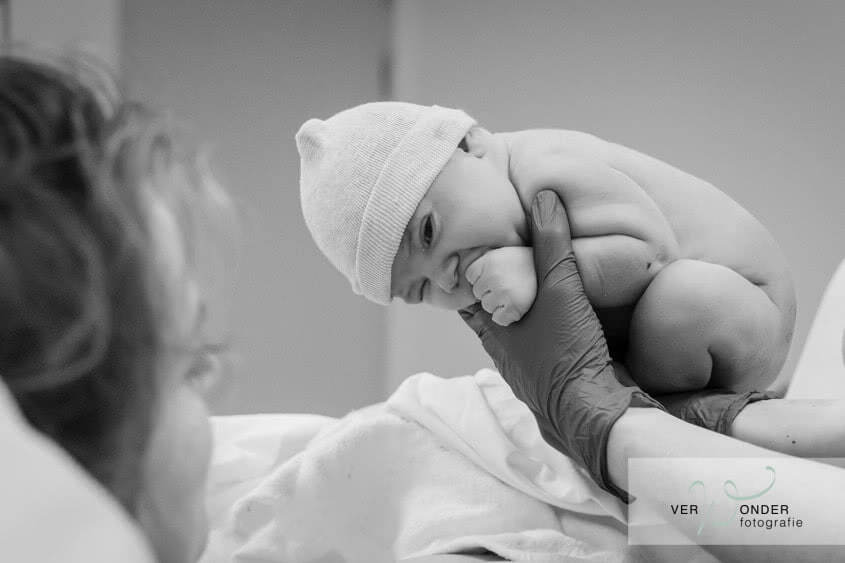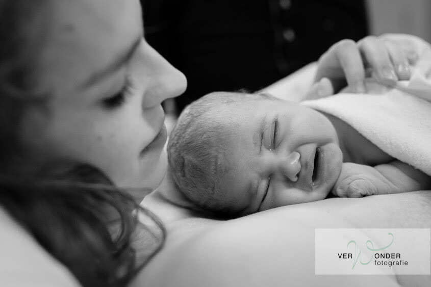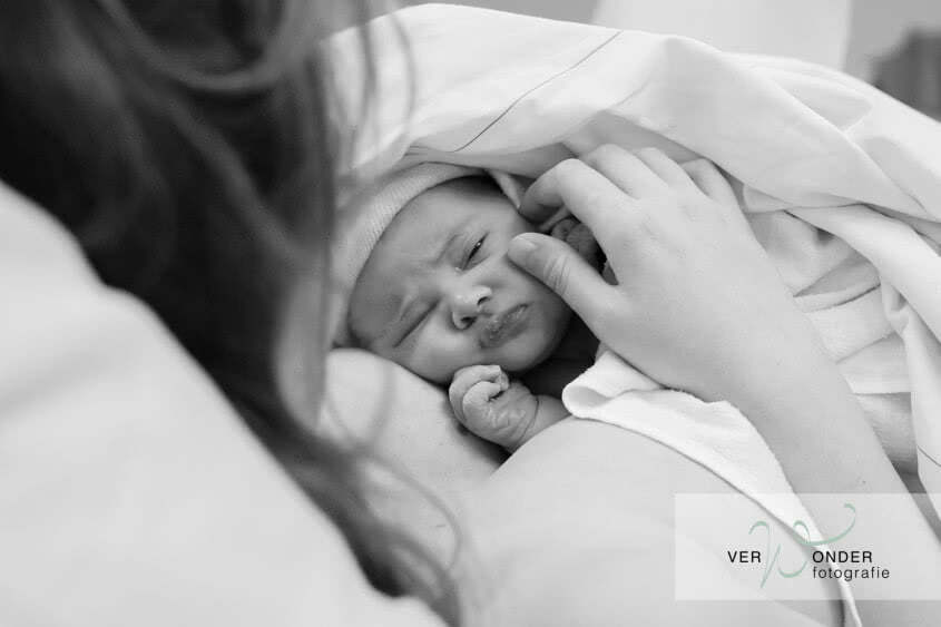 Na een tijdje vertelt Judith het verhaal: dat ze maar drie centimeter ontsluiting had en iedereen dacht dat het nog wel even zou duren. Toen ze een uurtje later echter het gevoel kreeg dat het kindje er echt uit wilde, bleek dat ze volledige ontsluiting had. Papa heeft mij toen direct gebeld, maar zoals de verpleegkundige ook zei: hier had ik nooit op tijd bij kunnen zijn, dit ging zo snel, dit had niemand verwacht. Gelukkig kan ik voor dit gezin nog de mooie waardevolle eerste momenten samen vast leggen. Die eerste bijzondere momenten met je kindje, het genieten, het verwonderen en elkaar voor het eerst zien.