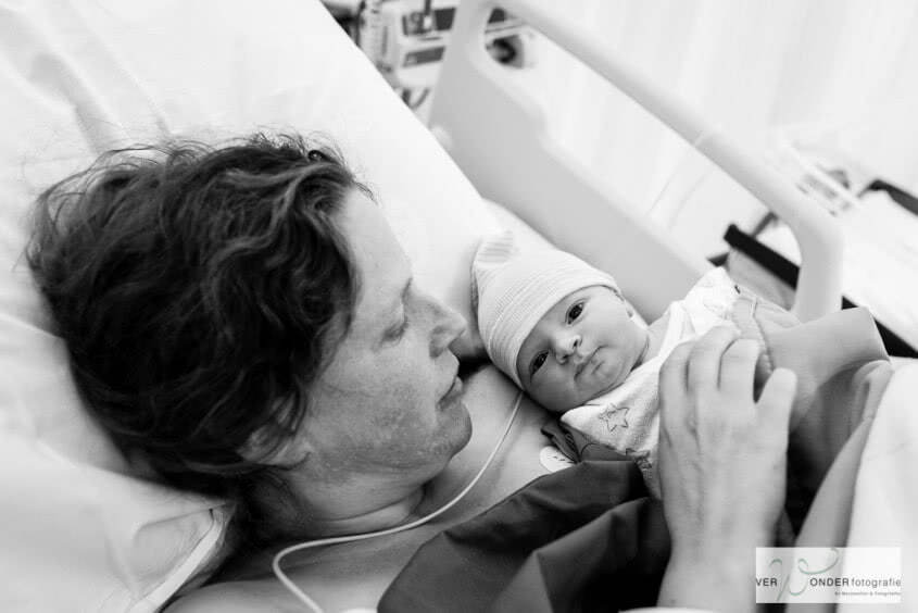 Antoinet moet nog even naar de uitslaapkamer en samen met Kevin lopen wij alvast naar de kraamafdeling om te wachten op het moment dat wij weer naar Antoinet kunnen gaan. Hessel laat zien flink trek te hebben en papa heeft de eer om zijn eerste flesje te geven en daarna gaan we snel terug naar mama. Wat zijn beide ouders trots en dankbaar dat er zo goed rekening is gehouden met de grenzen die vooraf zijn bepaald. En wat een cadeau dat ook ik erbij mocht zijn om de bijzondere geboorte van Hessel als waardevol document vast te leggen.