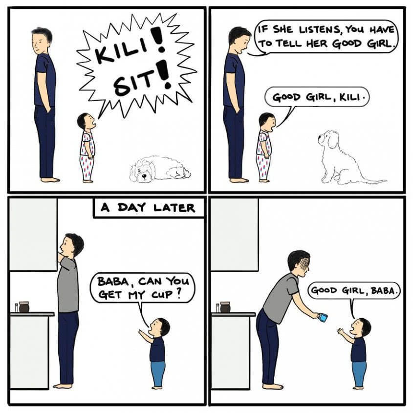 Toen zijn zoontje drie jaar was, begon illustrator Jonathan Jui striptekeningen te maken van hele herkenbare situaties. Zijn tekeningen laten de logica van een peuter zien en wees gewaarschuwd: die werken behoorlijk op je lachpieren.
