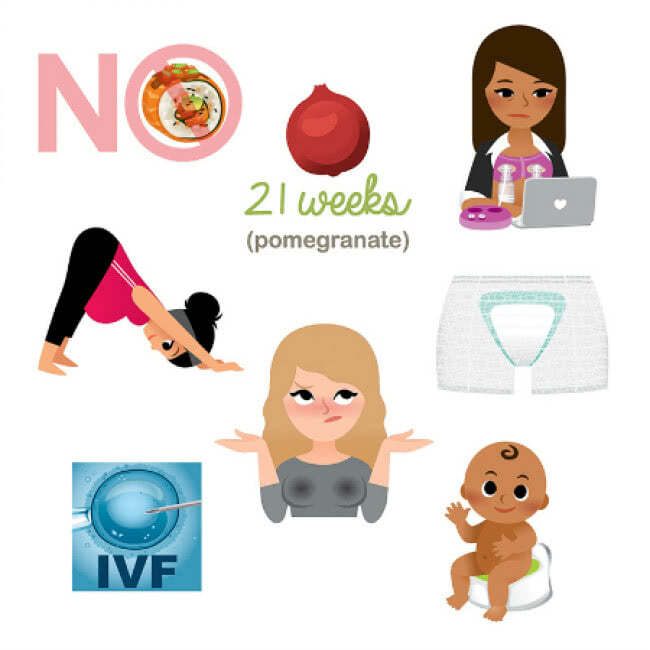 Wat je kunt verwachten? Emoji's van moeders die achter hun kind aanrennen, van moeders met babyspuug in het haar en van moeders die 's nachts met een wakkere baby in bed zitten. Maar ook een emoji van een positieve zwangerschapstest, een kloppend hartje op een echo, een misselijke aanstaande moeder en een uitpuilende luiertas. Kortom: echt álles waar je als (aanstaande) moeder mee te maken krijgt.