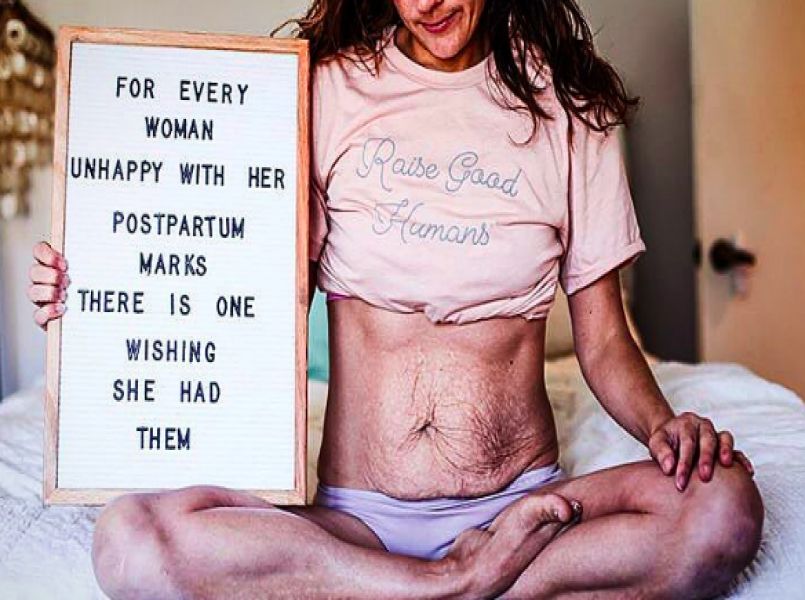 “Voor elke vrouw die ongelukkig is met haar bevallingssporen op haar lichaam is er een die wenst dat zij ze ook had.”