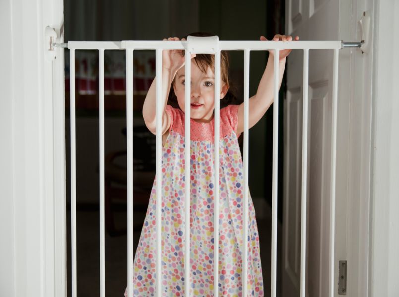Kleine babyvingertjes kunnen nogal wel eens tussen de deuren komen. Kijk sowieso heel goed uit wanneer je een deur achter je dicht doet, of er niets tussen zit. Verder kun je zo’n aquagym-poolnoodle open knippen en aan de bovenkant van de deur plaatsen, zodat die nooit helemaal dicht kan en dus altijd veilig is voor je kind.