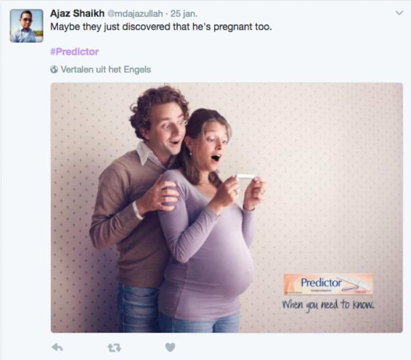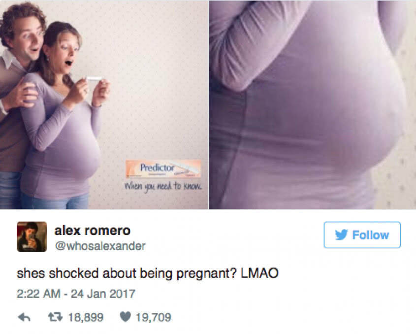 Wij moesten enorm lachen om deze reclamefoto van dit overdreven verbaasde stel met een - daar gaan we in ieder geval vanuit - positieve zwangerschapstest in handen. De vrouw in kwestie is namelijk op z'n minst in het derde trimester. Een zwangerschapstest lijkt ons, na het zien van deze foto, eerlijk gezegd vooral overbodig.