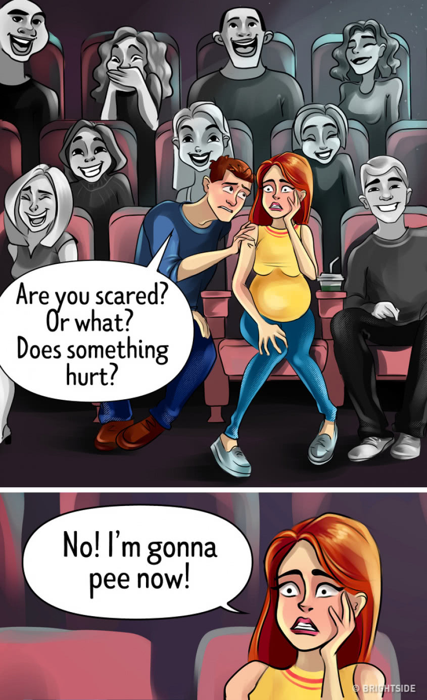 Het leven van een zwangere kan soms behoorlijk zwaar zijn. De illustratoren van More Shout maakten van verschillende herkenbare situaties hilarische tekeningen.