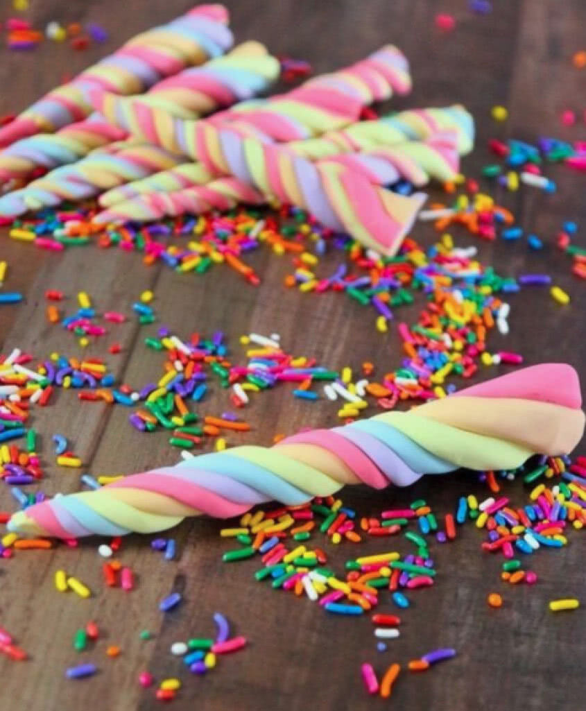 De hapjes op een eenhoornfeestje hebben zoveel mogelijk kleur. Denk aan spekjes, cupcakes, donuts, maar ook popcorn past heel goed op een eenhoornfeestje. Ook een idee: ijshoorntjes op de cupcakes en voila, je hebt eenhoorncupcakes.
