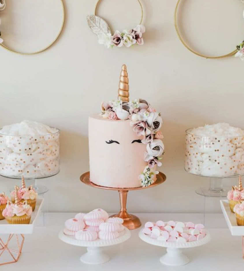 Om te beginnen kun je gaan voor een prachtige taart met eenhoorn caketopper. Je kunt dit natuurlijk speciaal laten maken bij een bakker, maar je kunt ook zelf aan de slag. Ook een goede tip: ben je niet bepaald een keukenprinses? Bestel een blanco taart bij de supermarkt of de Hema en versier hem zelf. Caketoppers en andere versieringen kun je op internet vinden.