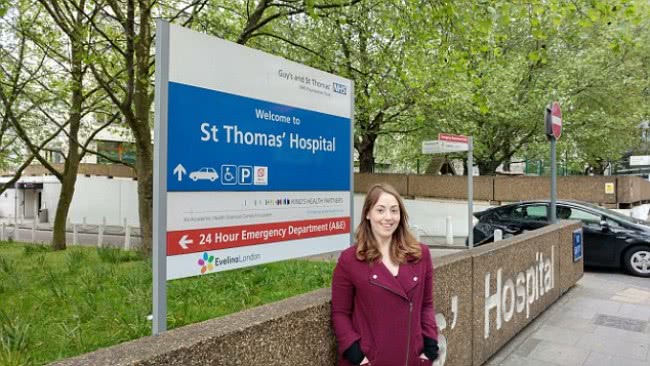 Holly voor het ziekenhuis waar ze de sterilisatie onderging.