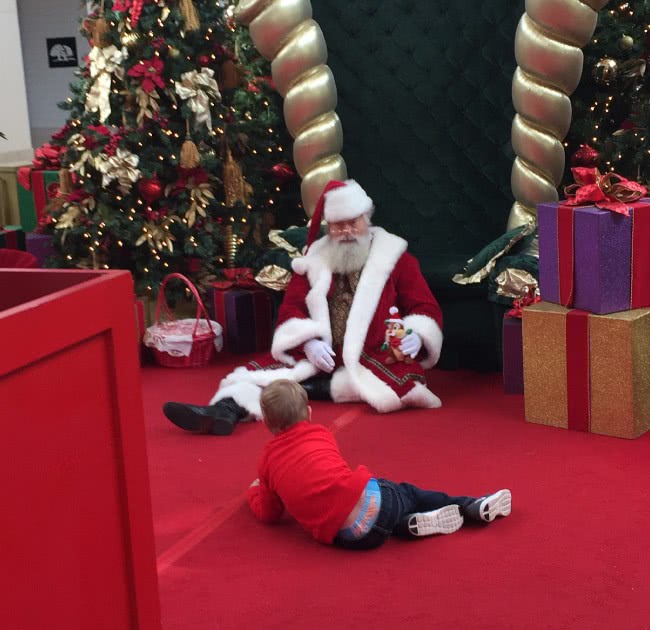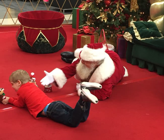 Wij vinden deze Kerstman geweldig omdat hij zoveel moeite doet om deze jongen zich veilig te laten voelen!