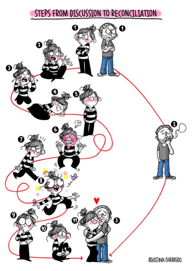 Wij vrouwen zijn aparte wezens. We kunnen het ontkennen maar eigenlijk weten we dit zelf ook wel. Sommige situaties waarin we ons worstelen zijn zelfs ronduit lachwekkend, en cartoonist Agustina Guerrero uit Argentinië wist deze situaties dan ook haarfijn te illustreren... Kijk en gniffel mee!