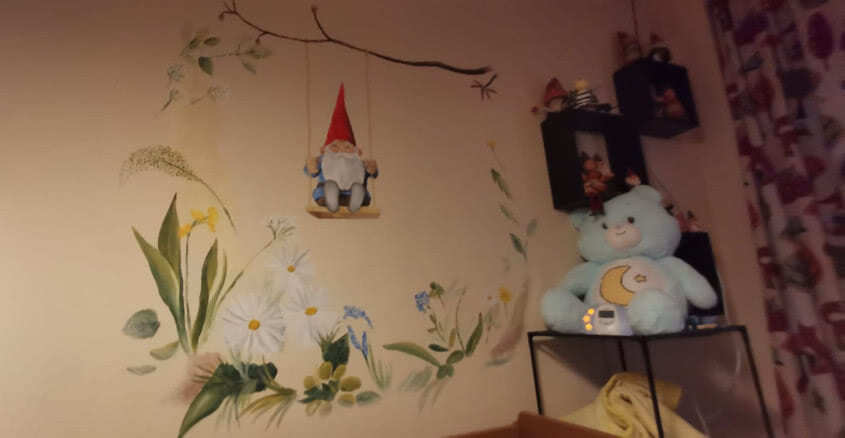Esther: “Wij wisten van beide kinderen niet of het een jongen of een meisje zou blijken te zijn, dus wilde ik voor allebei een neutraal thema. De oudste heeft daarom een kamer die vol is met De Kabouter van Rien Poortvliet. Ik was daar als kind heel erg fan van. Voor hem hebben we een mooie muurschildering laten maken.”