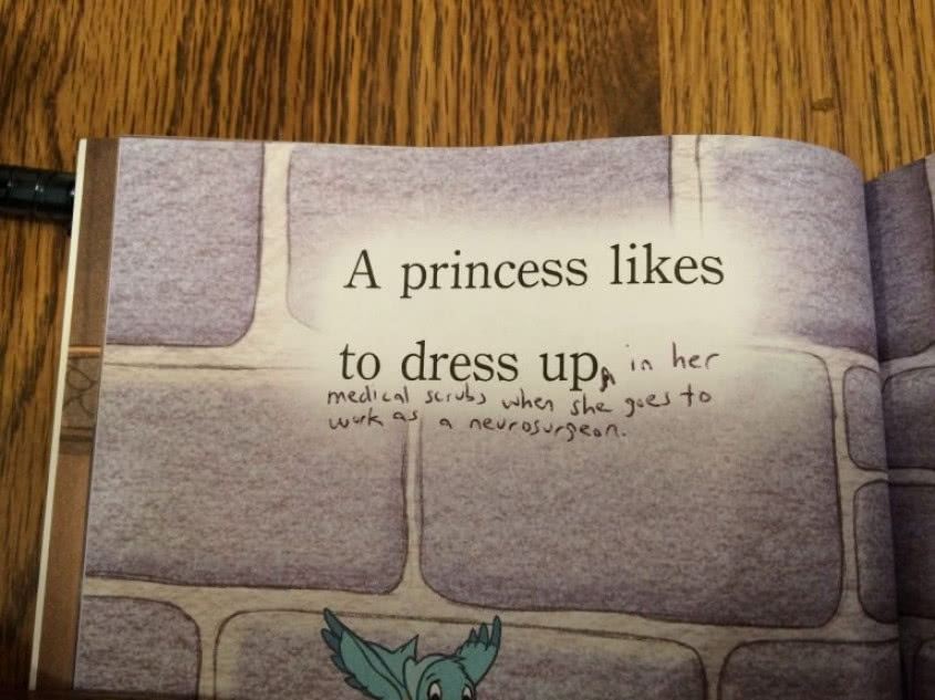 "Ik word een beetje moe van al dat prinsessen-gedoe!" zegt Daniëlle, sociologie-professor aan de Lehigh Universiteit. "Het leert kleine meisjes min of meer letterlijk dat het vooral belangrijk is hoe mooi ze eruit zien en dat ze een knappe prins ontmoeten. Nog steeds dus, ook al is het al 2016. Toen ze één van de favoriete Disneyboeken van haar dochter in handen kreeg, besloot ze die een kleine feministische make-over te geven om haar driejarige meisje een paar belangrijke lessen mee te geven.