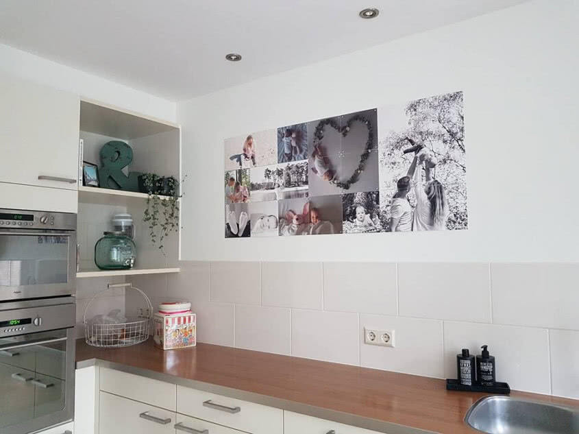 Maar goed… foto’s! Hoe krijg je die op een mooie manier in je woonkamer? Er is een wens voor nog een kindje, dus daar wil ik rekening mee houden. Wil ik verschillende foto’s in een fotolijst, in mijn huis? Nee, dat vind ik te rommelig worden. Daarnaast zijn wij een jong gezin en daar mag ook best wat moderns voor in huis komen. Bij fotolijsten krijg ik toch vaak het beeld van de oude babyfoto van mijzelf bij mijn opa en oma op de kast. Jaar in, jaar uit dezelfde foto. Nee, dat wil ik niet!