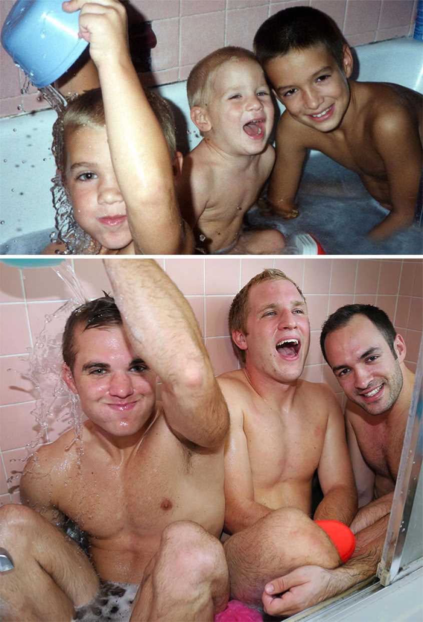 De broers en zussen op onderstaande foto's hebben iets heel tofs gedaan met hun oude kinderfoto's. Als volwassenen hebben ze dezelfde foto's namelijk herhaald en dat geeft een fantastisch resultaat. Kijk en geniet mee!