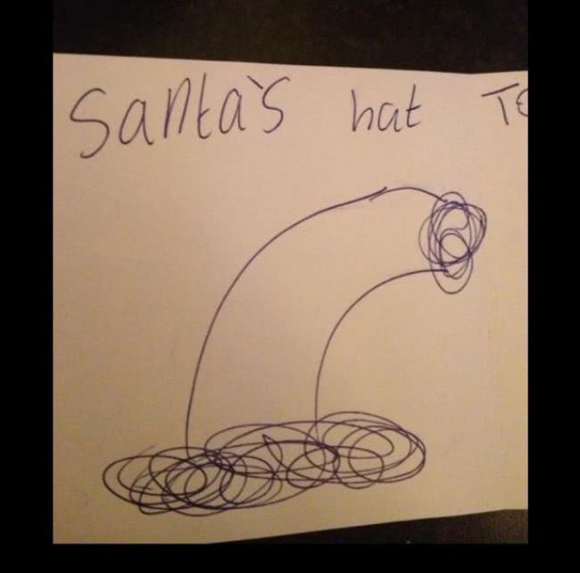 Zegt je kind dat hij of zij een mooie kerstkaart voor je gaat maken, krijg je ineens een kerstman met een grote roze piemel in je hand gedrukt. “Ja héél mooi schatje! Zullen we deze gauw in de schoenendoos opbergen? Oké doei!”