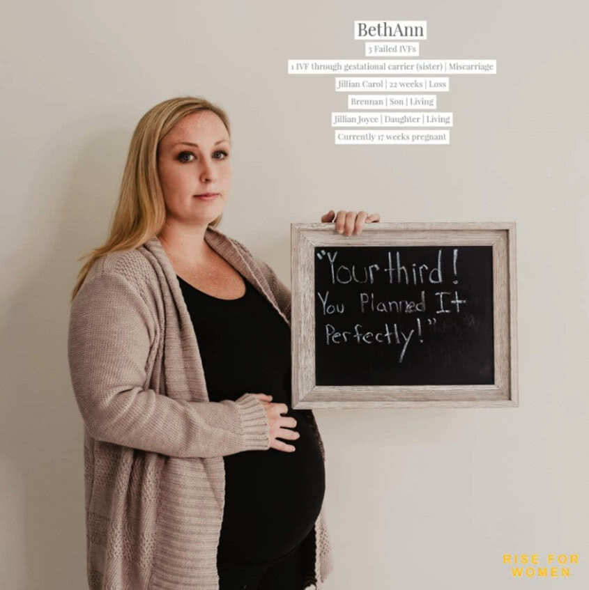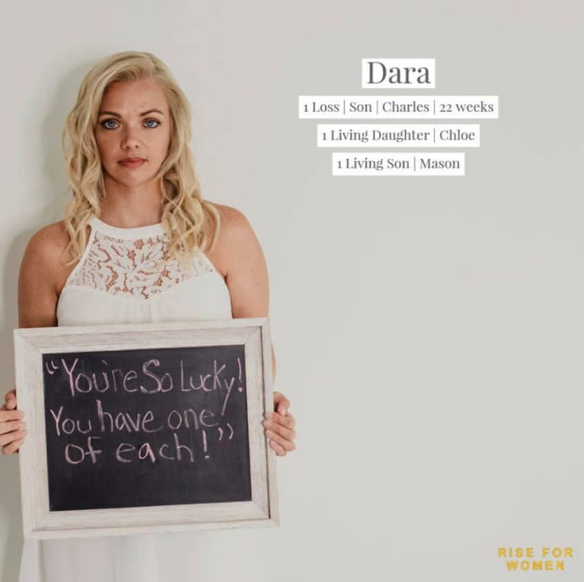 Dana deelde een fotoserie van vrouwen die een miskraam gehad hebben via haar organisatie Rise for Women. Daarbij staan de pijnlijke reacties die deze vrouwen nadien kregen van mensen.
