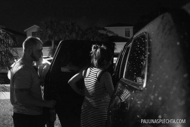 Paulina vertelt het bijzondere verhaal: “Ik mocht de bevalling fotograferen van Paula en Joe D’Amore die hun derde kindje verwachtten. De bevalling begon thuis en op het laatste moment voor de daadwerkelijke geboorte, besloot Paula naar het ziekenhuis te willen. Paula en Joe gingen samen in de auto en ik ben in mijn eigen auto achter ze aan gereden. Op de parkeerplaats van het ziekenhuis rende ik naar de auto van Paula toe, waar ik zag hoe vader Joe het hoofdje van zijn dochter Daniella al vast had!”