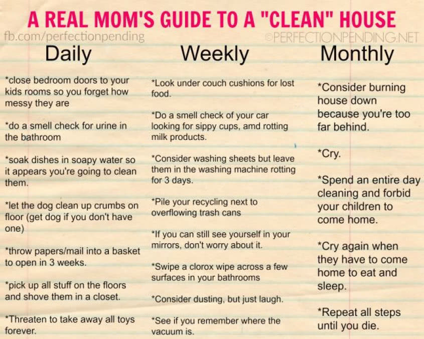 Een huis vol kinderen (of eigenlijk is eentje, een hond en een man al meer dan voldoende) is een garantie voor ZOOI! Op internet circuleren talloze schoonmaakschema's die opperen het meest functioneel, snel, en effectief te zijn. Echter dacht Meredith Ethington daar heel anders over. Zij plaatste haar versie van het ideale en meest effectieve schoonmaakschema op haar facebookpagina en wij moeten eerlijk zeggen: daar zit zeker iets in!