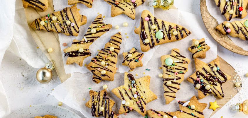 Met deze knapperige glutenvrije kerstkoekjes met vanille en chocolade maak je iedereen blij! Leuk om samen met je kind te bakken. Dus hup, snel aan de slag!