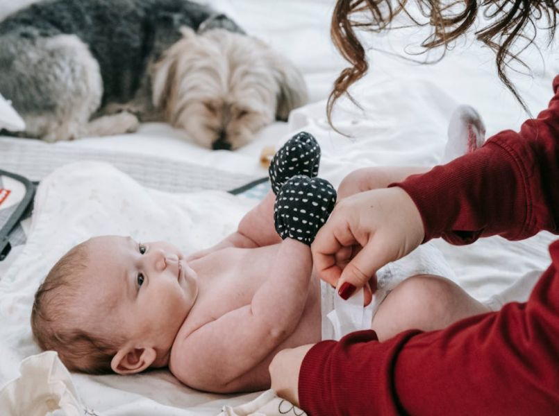 Het kan ook veroorzaakt worden doordat de luier aan het schuren is langs de baby’s huid. Zorg er altijd voor dat de baby de goede maat luier heeft.