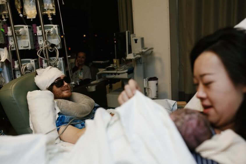 Kort voor de bevalling werd de 26-jarige Casey opgenomen voor drie zware hersenoperaties. Dat was een geluk bij een ongeluk want toen de bevalling zich eenmaal aandiende was hij al in het ziekenhuis, onder behandeling, klaar met operatie en in de positie om door het verplegend personeel naar de plaats waar zijn zoon het levenslicht zou zien, begeleidt te worden.