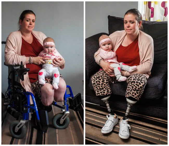 In maart 2016 kreeg Ella, na fysiotherapie, protheses aangemeten. Ze moet er nog steeds aan wennen. Daarnaast is meer nieuw voor haar, en niet in positieve zin: “Ik ben van een actieve moeder naar iemand die gebonden is aan haar rolstoel gegaan. Mijn vijfjarige durfde niet naar me te kijken zonder dat ik een dekentje over mijn benen had en mijn oudste liep achter op school. Mijn gezin viel uit elkaar en ik stond machteloos. Een van mijn kinderen is steeds bang als ik naar het ziekenhuis voor controle ga; ze denkt dat ik dan weer een ledemaat verlies. Ik weet niet of ik ooit nog op mijn benen zal staan.”
