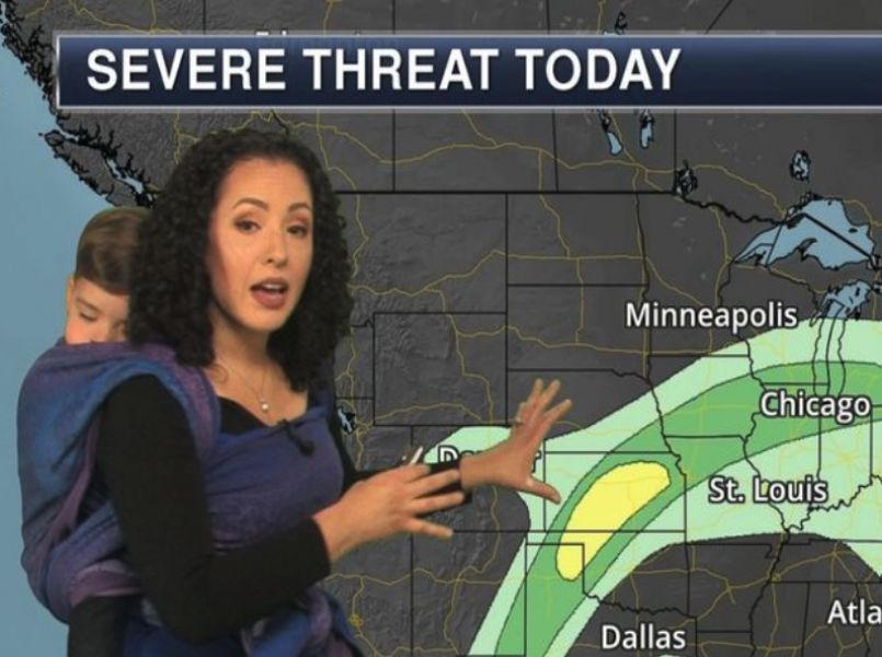 Een Amerikaanse weervrouw verraste haar publiek toen ze op televisie verscheen met haar kindje in een draagdoek. Susie Martin wilde aandacht vragen voor International Babywearing Week terwijl ze het weerbericht presenteerde.