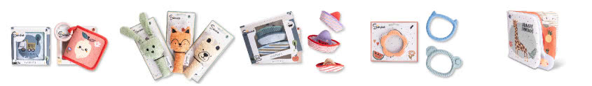 Het nieuwe merk Sinne brengt in samenwerking met Kruidvat kleurrijke babyproducten uit. De rammelaar, het badboekje, de badbootjes, de bijtring en het speelboekje zijn omhuld in een vrolijk jasje.