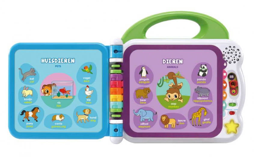 Met het leerboek Mijn Eerste 100 Woordjes leggen kleintjes van 1,5 tot 4 jaar een gezonde basis voor taalontwikkeling. Spelenderwijs leren ze zowel Nederlandse als Engelse betekenissen.