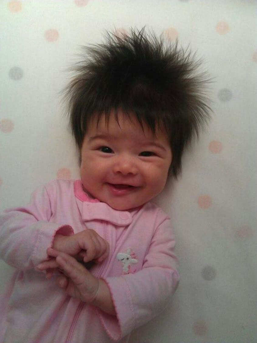 Hoe zit/zat het met het haar van jouw baby? Was dat een enorme bos of was er amper haar te zien? Deze baby’s zijn voorzien van een nogal opvallend kapsel…