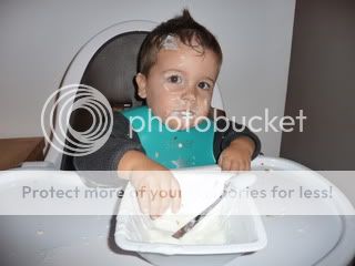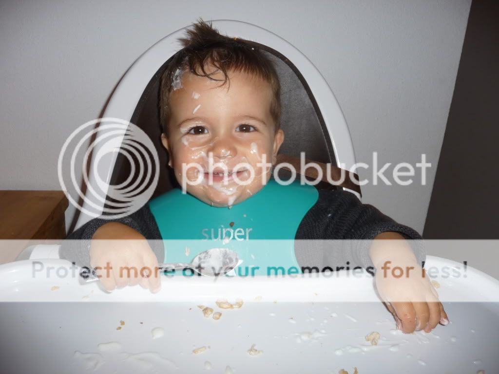 Wat een mooie foto's! Leuk dat hij nu zelf wil eten zo geeft hij ook aan wat hij wil. Wat wel handig is is een slabertje met armen. Zo maakt hij niet alle kleren vies. Dit is trouwens gewoon een kleine tip! Van moeder tot moeder;-) Liefs