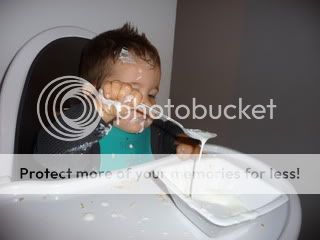 Lachen, met die stofzuiger! En dat eten, heel herkenbaar. Jort laat zich alleen nog voeren als we zoete vla of yoghurt in zijn mond willen lepelen, de rest eet hij alleen als hij het zelf in zijn mond mag steken. Niet altijd even handig, maar wel heel stoer natuurlijk!