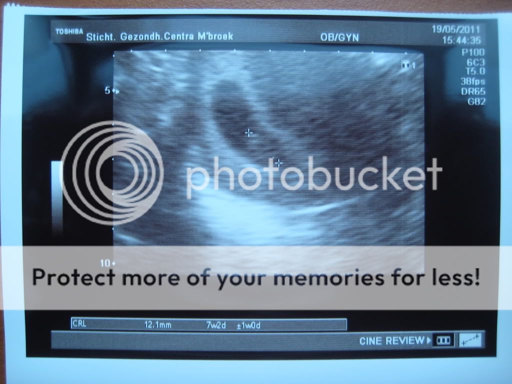 Na wat meten kwam ze uit 12,1 mm en dat komt neer op 7w2d, dus 2 daagjes korter als de bereking volgens de menstruatie, maar ze zei ook dat het nu nog helemaal niet betrouwbaar is. We houden voor nu nog even onze eigen berekening dus aan en dan 16 juni mogen we weer komen voor een termijnecho :-) !