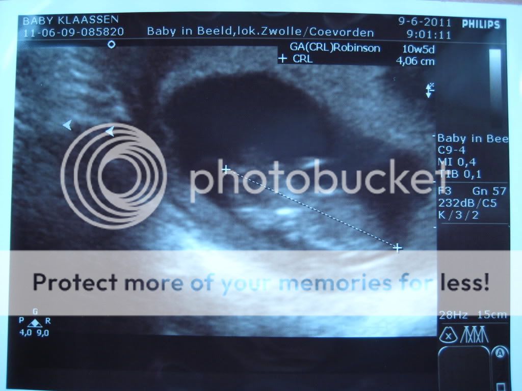 En natuurlijk nog even opgemeten en kleine uk is nu 4 cm! Ze kwam uit op 10w,5d! Dat is 1 dagje verder dan onze eigen berekening en als dat er volgende week bij de officiële termijnecho bij de vk ook uitkomt, is de uitgerekende datum 31 december 2011! Voor nu laat ik het nog even op 1 januari staan.