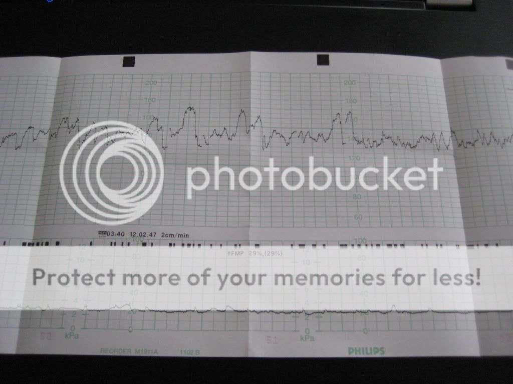We werden vriendelijk ontvangen en al snel werd ik geroepen. Gelukkig hoorden we het hartje meteen toen ze me aansloot voor de CTG, maar goed... Moest een half uurtje met de banden om blijven liggen.
