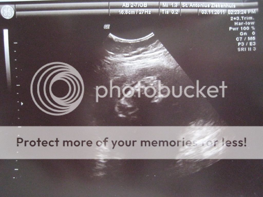 Ik heb inmiddels zó ontzettend veel echofoto's in onze verzameling ;-) ! Ik zat ze even te tellen... Het zijn er inmiddels 34 en dan hebben we ook nog 2 CD's met echofoto's (van de 20 weken echo en de pretecho met 27 weken)... En volgens mij heb ik deze zwangerschap al 11 echo's gehad! Hiervan waren de echo's met 11 weken, 16 weken, 25 en 27 weken (pretecho's) echo's die we zelf betaald hebben, de rest allemaal met een reden... Best veel, haha! En er staat er sowieso over een kleine 3 weken nog een groeiecho op de planning, dus we zijn er nog niet ;-) ! Maar goed, naar onze kleine uk kijken is HE-LE-MAAL niet erg hoor :-) !