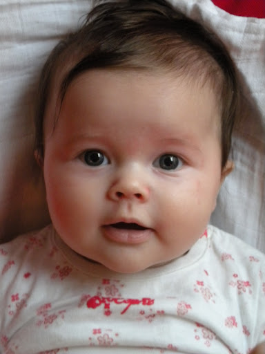 Ik betrapte mijzelf erop dat ik de tel in weken kwijt was en dat we nu dus overgestapt zijn in maanden! Oef, dan gaat het ineens snel...! Ze is ook wat meer van de 'baby' kleertjes af (zachtroze etc) en krijgt nu echt van die wijze kleertjes, dat staat zo leuk!!