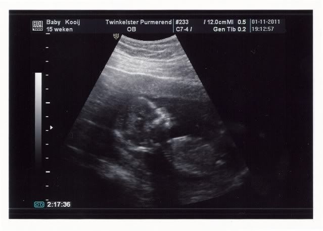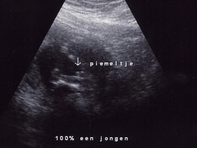 Eerst wilde hij het niet laten zien en hield hij zijn handje precies voor zijn piep hahah maar al snel werd zijn geslacht zichtbaar! We krijgen een jongen!! :D